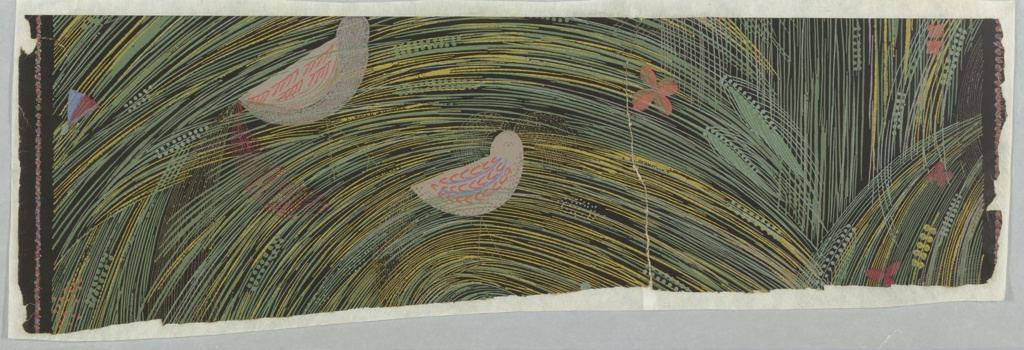 Sidewall, Sommerfeld; Designed by Felice Rix-Ueno (Austrian, 1893–1967, active Japan 1935–1967); Made by Salubra-Werke A.G.; Made for Wiener Werkstätte (Austria); Switzerland; machine-printed paper; L x W (a): 213.7 × 75.2 cm (7 ft. 1/8 in. × 29 5/8 in.) L x W (b): 212.1 × 75.2 cm (6 ft. 11 1/2 in. × 29 5/8 in.) L x W (d, roll): 203.8 × 74.9 cm (6 ft. 8 1/4 in. × 29 1/2 in.) Repeat H: 100.3 cm (39 1/2 in.); Gift of Mrs. A.H. Jacobs; 1967-14-1-a/f