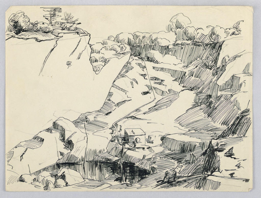 Drawing, Mining Village with Cliffs Cut Away; Florence Choate (American, 1878–1967); USA; pen and black ink, graphite on paper; 20.8 × 27.5 cm (8 3/16 × 10 13/16 in.); Gift of the Estate of Florence Choate; 1967-27-127