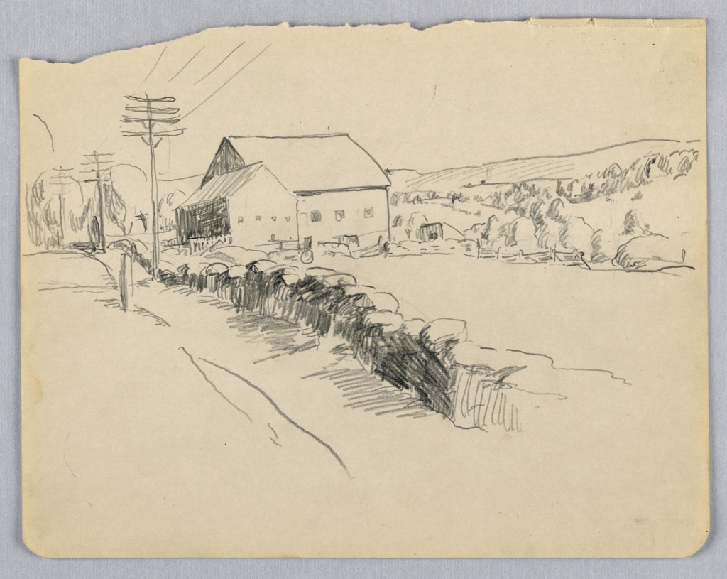 Drawing, Barn and Fields; Florence Choate (American, 1878–1967); USA; graphite on paper; 19.3 × 25 cm (7 5/8 × 9 13/16 in.); Gift of the Estate of Florence Choate; 1967-27-138