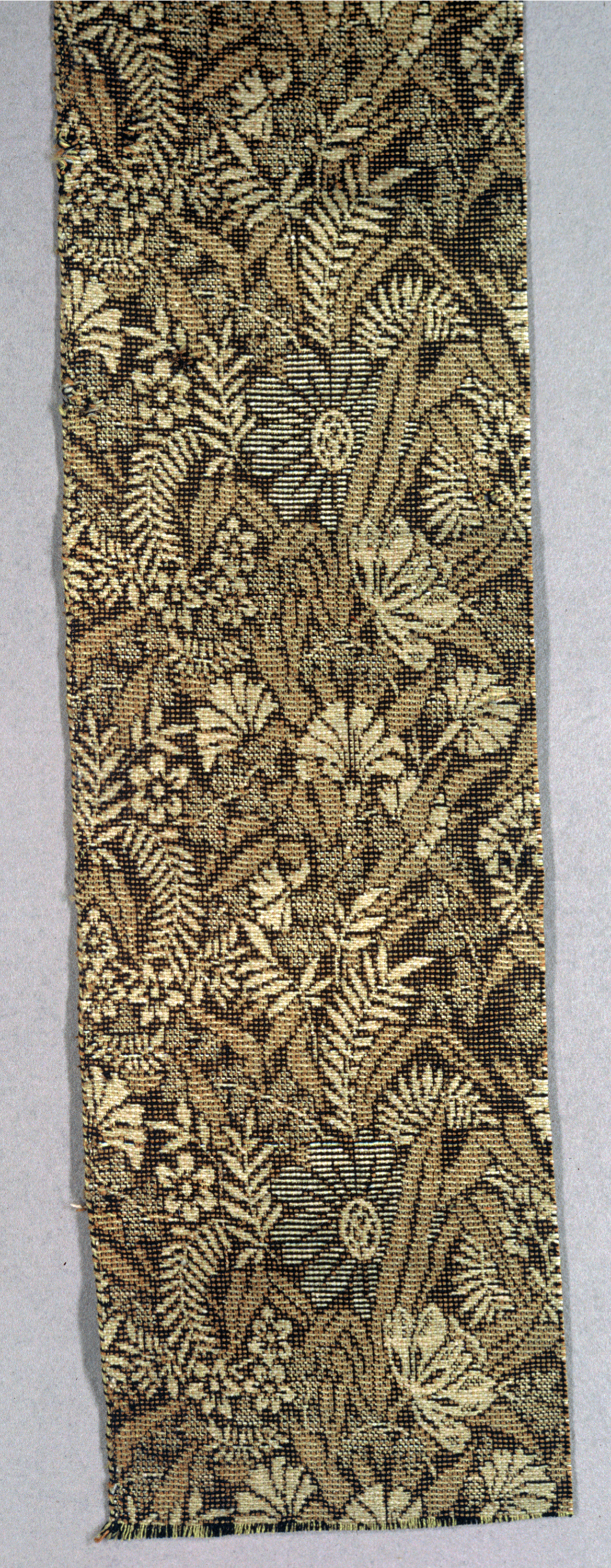 This is a Carpet fragment. It is dated 1860–70 and we acquired it in 1967. Its medium is wool and its technique is machine made. It is a part of the Textiles department.