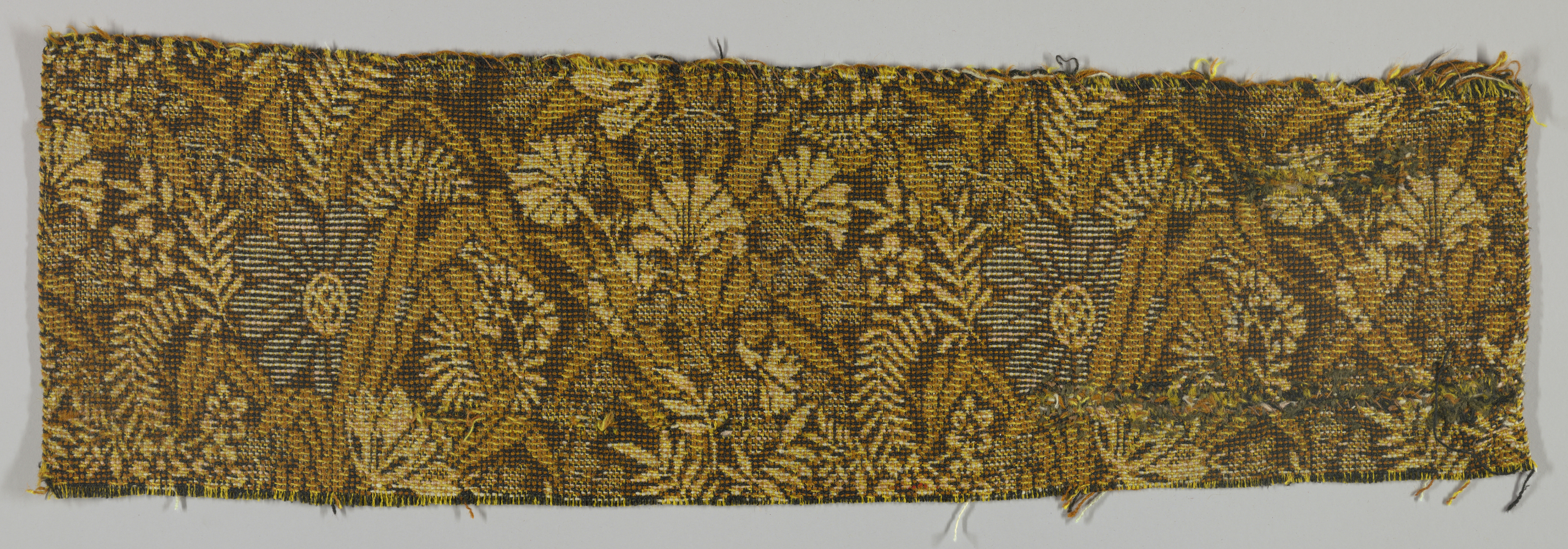 This is a Carpet fragment. It is dated 1860–70 and we acquired it in 1967. Its medium is wool and its technique is machine made. It is a part of the Textiles department.