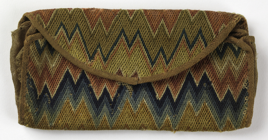 Purse (USA); wool on linen ground; H x W: 11 x 22 cm (4 5/16 x 8 11/16 in.); Gift of Harvey Smith; 1967-53-1