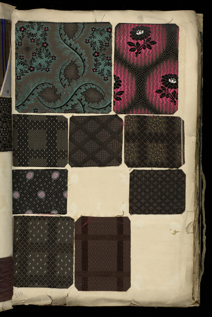 This is a Scrapbook. It is dated 1890s and we acquired it in 1967. Its medium is wool, silk and its technique is variety of weave structures. It is a part of the Textiles department.