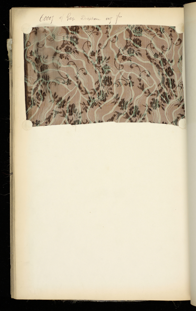 This is a Sample book. It is dated 1890 and we acquired it in 1967. Its medium is silk and its technique is plain weave and brocaded plain weave. It is a part of the Textiles department.