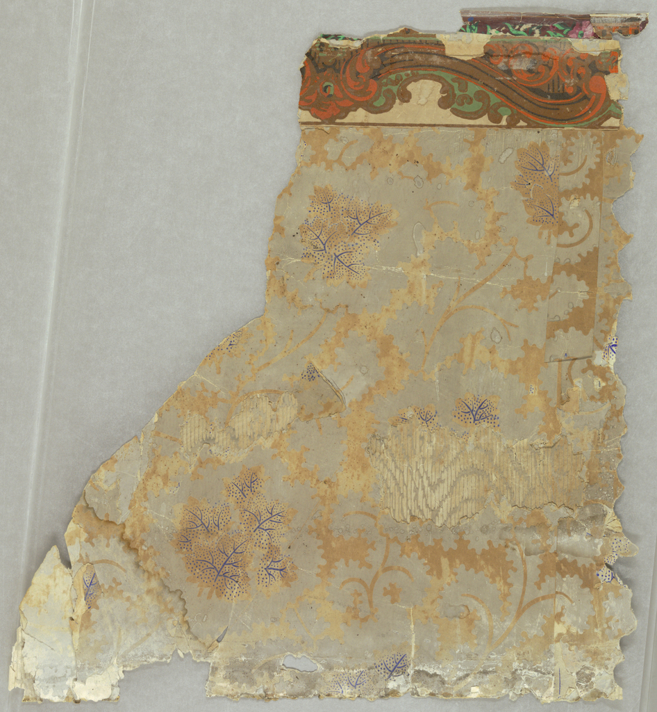 This is a Sidewall - fragment. It is dated 1840–1900 and we acquired it in 1967. Its medium is machine-printed, flocked. It is a part of the Wallcoverings department.