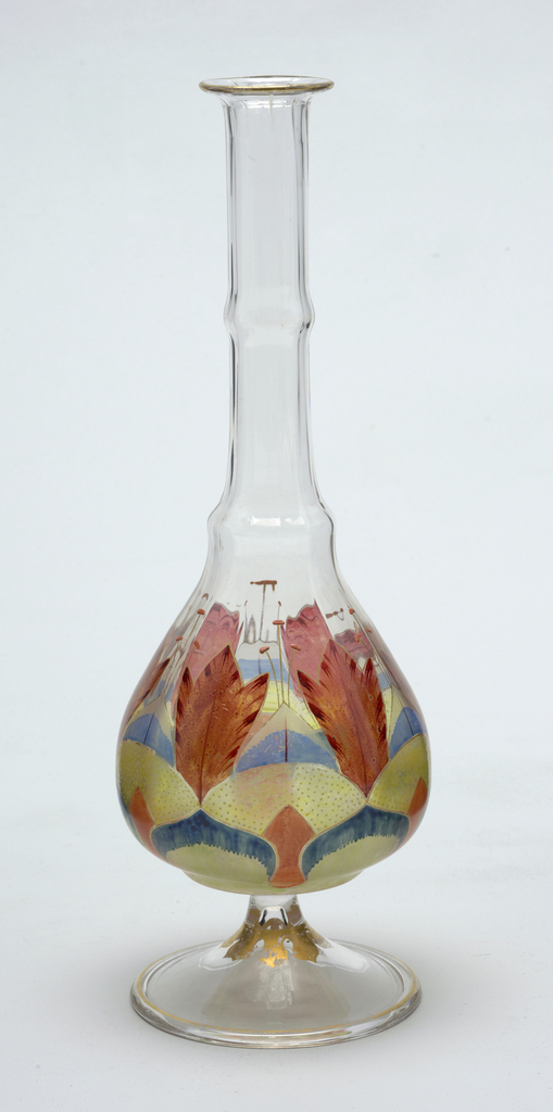 This is a decanter. It is dated ca. 1910 and we acquired it in 1967. Its medium is blown glass. It is a part of the Product Design and Decorative Arts department.