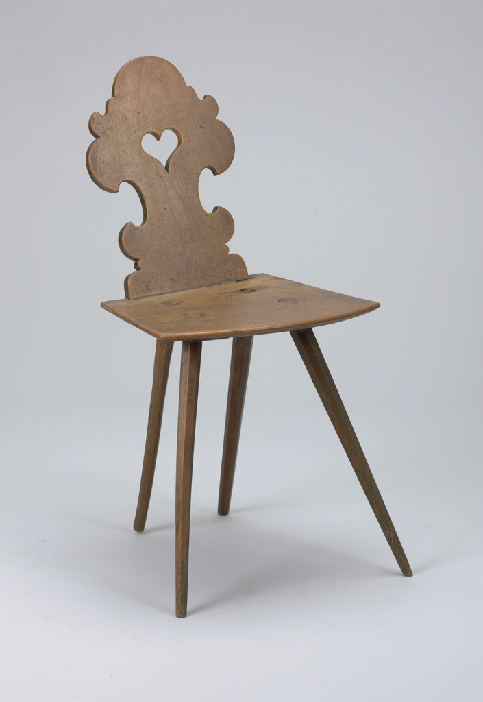 This is a side chair. It is dated late 17th–early 18th century and we acquired it in 1968. Its medium is fruitwood. It is a part of the Product Design and Decorative Arts department.