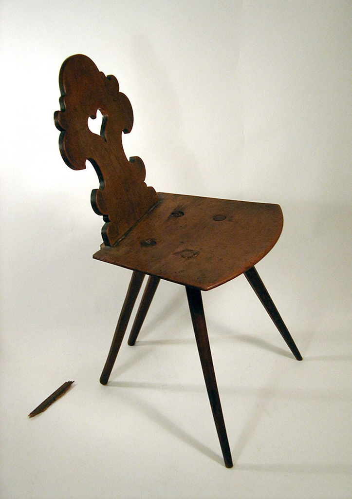 This is a side chair. It is dated late 17th–early 18th century and we acquired it in 1968. Its medium is fruitwood. It is a part of the Product Design and Decorative Arts department.
