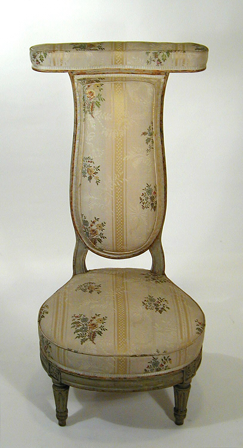 Kneeling Chair (France); Made by Georges Jacob (French, 1739–1814), C. Chevigny; carved and painted beechwood, silk; H x W x D: 92.5 x 47.5 x 52cm (36 7/16 x 18 11/16 x 20 1/2in.); 1968-158-15