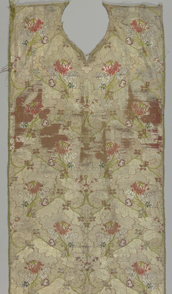 This is a Textile. It is dated 18th century and we acquired it in 1968. Its medium is silk, metallic thread. It is a part of the Textiles department.