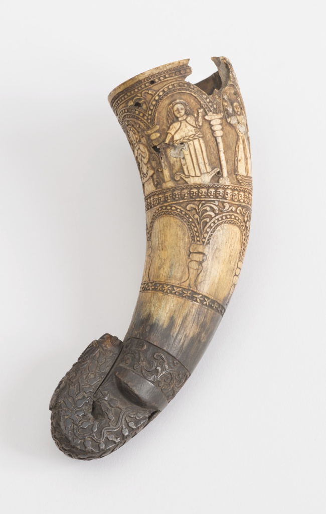 Container; formed and carved horn; H x diam.: 13 x 4.5 cm (5 1/8 x 1 3/4 in.); Gift of Harvey Smith; 1968-88-2