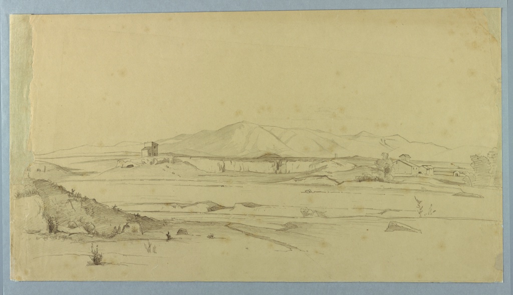 Drawing, Study of landscape; William Stanley Haseltine (1835 – 1900); USA; graphite on paper; 32.8 × 59.6 cm (12 15/16 × 23 7/16 in.); Gift of Mrs. Roger H. Plowden; 1969-121-32