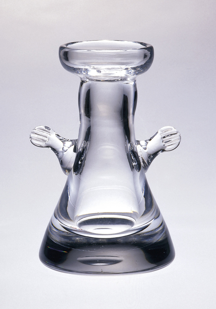 This is a candlestick. It was designed by Erik Höglund. It is dated ca. 1959 and we acquired it in 1969. Its medium is glass. It is a part of the Product Design and Decorative Arts department.