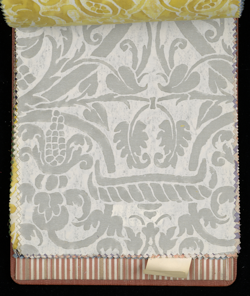 This is a Sample book. It was designed by Mariano Fortuny and printed by Societa Anonima Fortuny and distributed by . It is dated 1969 and we acquired it in 1969. Its medium is cotton and its technique is woven. It is a part of the Textiles department.