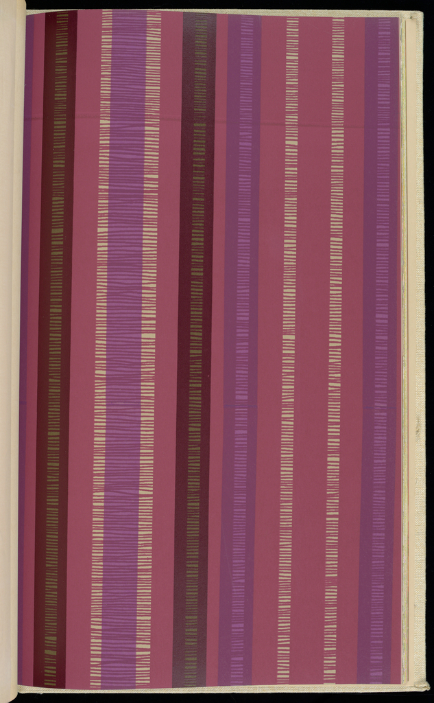 This is a Sample book. It was manufactured by The Jack Denst Designs, Inc.. It is dated 1965 and we acquired it in 1969. Its medium is screen printed on vinyl. It is a part of the Wallcoverings department.