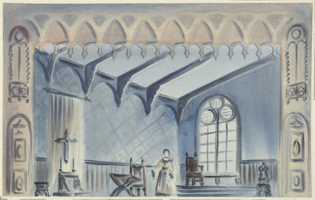 Drawing, Stage Design: Volpone; Designed by Jay Keene; USA; brush and watercolor, ink on drawing board; H x W: 31.5 × 50.5 cm (12 3/8 × 19 7/8 in.); Gift of Jay Keene; 1970-51-9