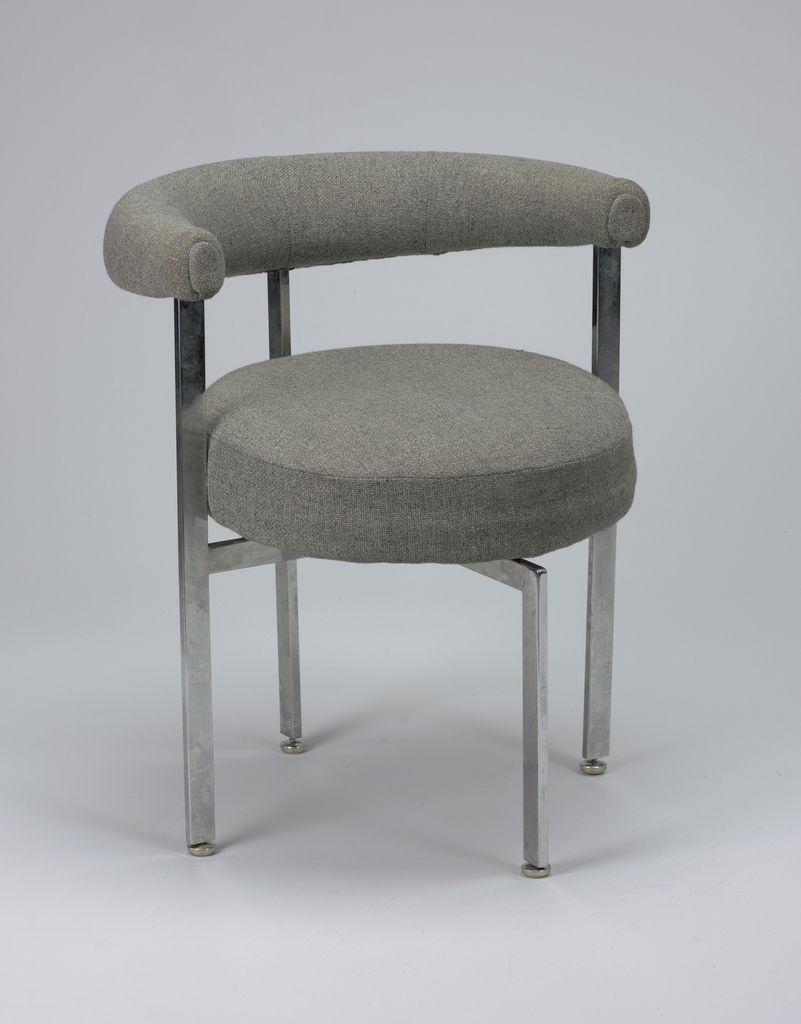 This is a Armchair. It was manufactured by Thonet Industries, Inc., U.S.A.. It is dated 1966 and we acquired it in 1971. Its medium is chrome-plated metal, woven fabric. It is a part of the Product Design and Decorative Arts department.