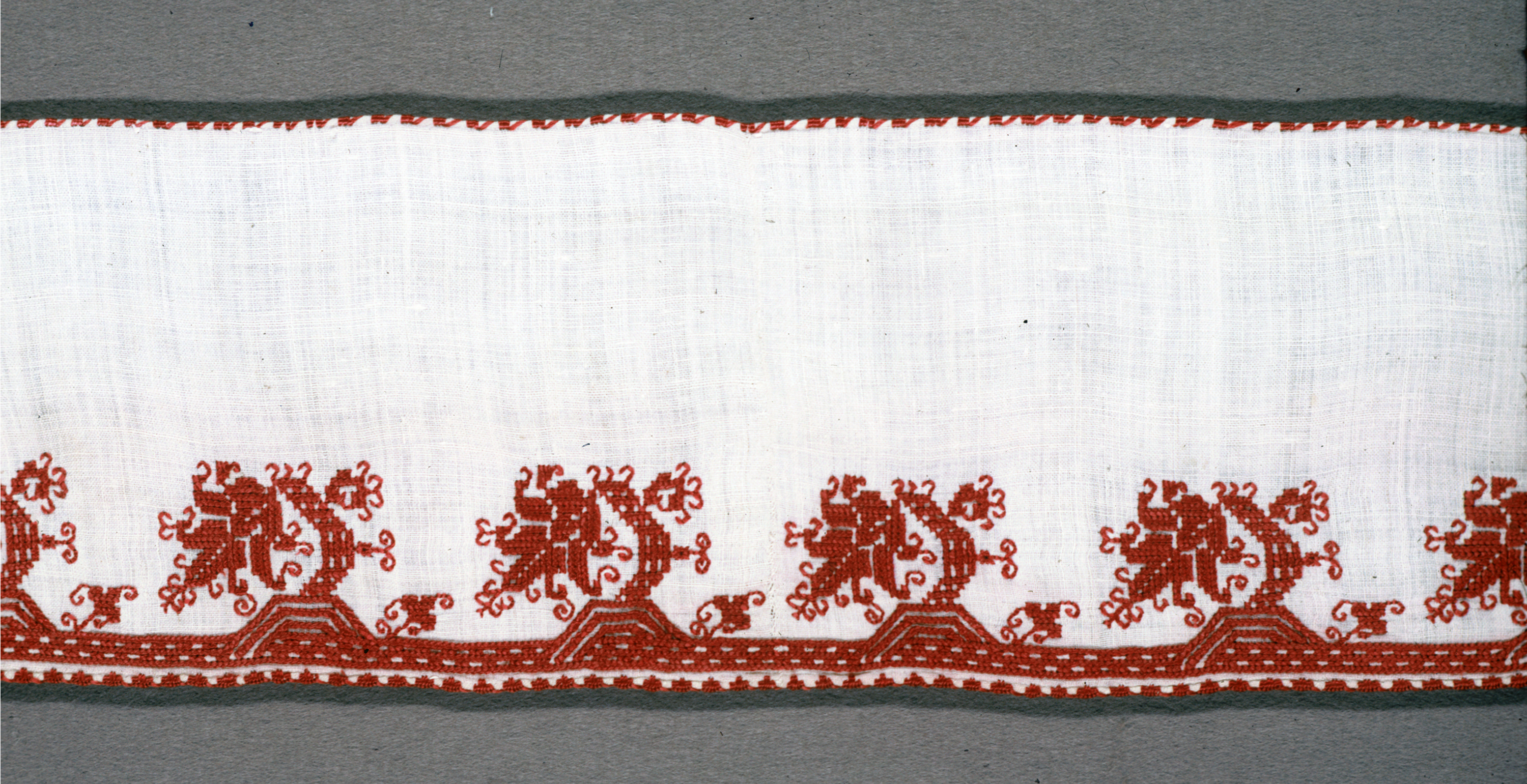 This is a Border. It is dated 17th century and we acquired it in 1971. Its medium is silk on linen and its technique is embroidered. It is a part of the Textiles department.