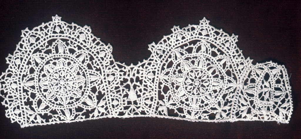 This is a Fragment. It is dated 16th–17th century and we acquired it in 1971. Its medium is natural linen and its technique is needle lace, reticella style. It is a part of the Textiles department.