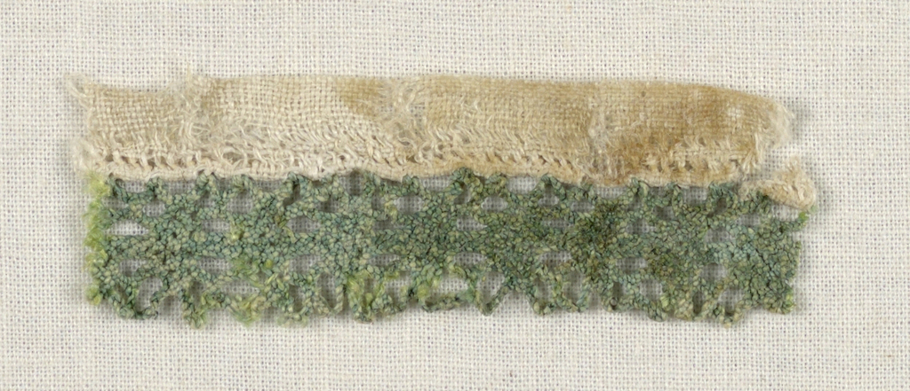 This is a Fragment. It is dated 16th century and we acquired it in 1971. Its medium is silk, linen and its technique is continuous braid like bobbin lace, plain weave fabric. It is a part of the Textiles department.