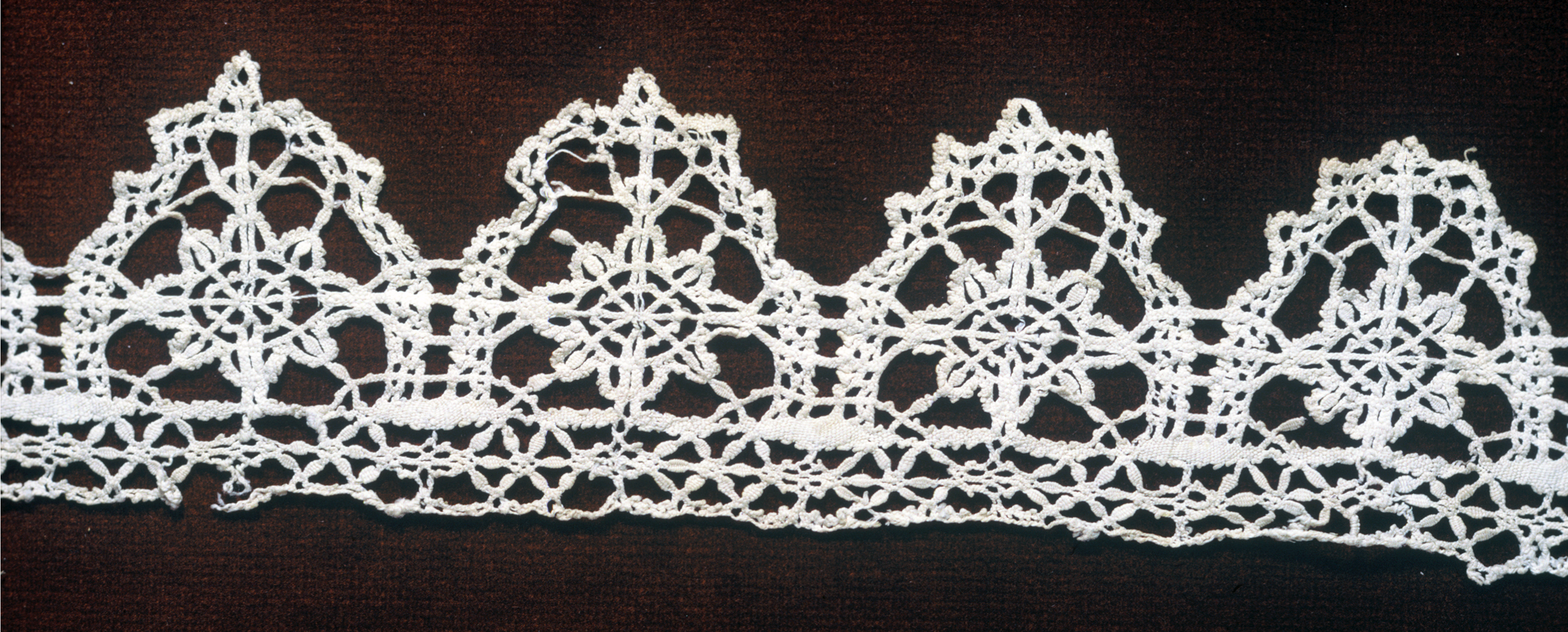 This is a Edging. It is dated late 16th–early 17th century and we acquired it in 1971. Its medium is linen and its technique is bobbin lace, continuous braid-like. It is a part of the Textiles department.