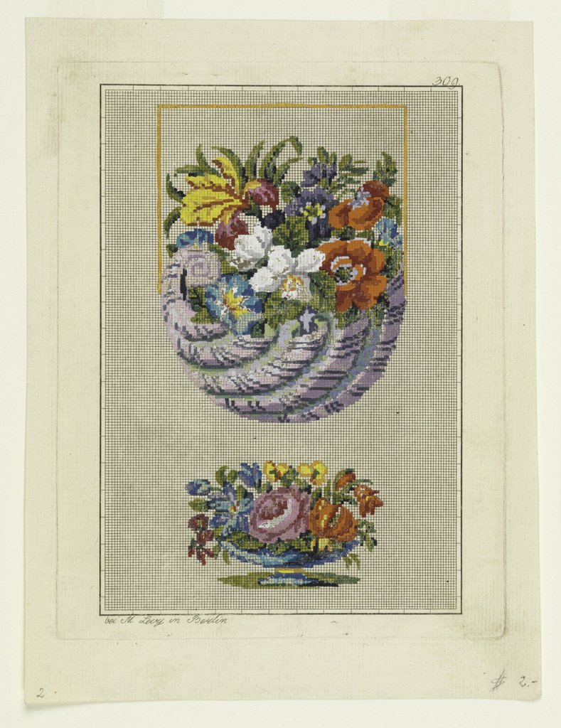 Drawing (Germany); Published by M. Levy; brush and gouache on pre-printed squared laid paper; Sheet: 23.6 x 17.9 cm (9 5/16 x 7 1/16 in.) Platemark: 20.3 x 15.7 cm (8 in. x 6 3/16 in.); Bequest of Marian Hague; 1971-71-28