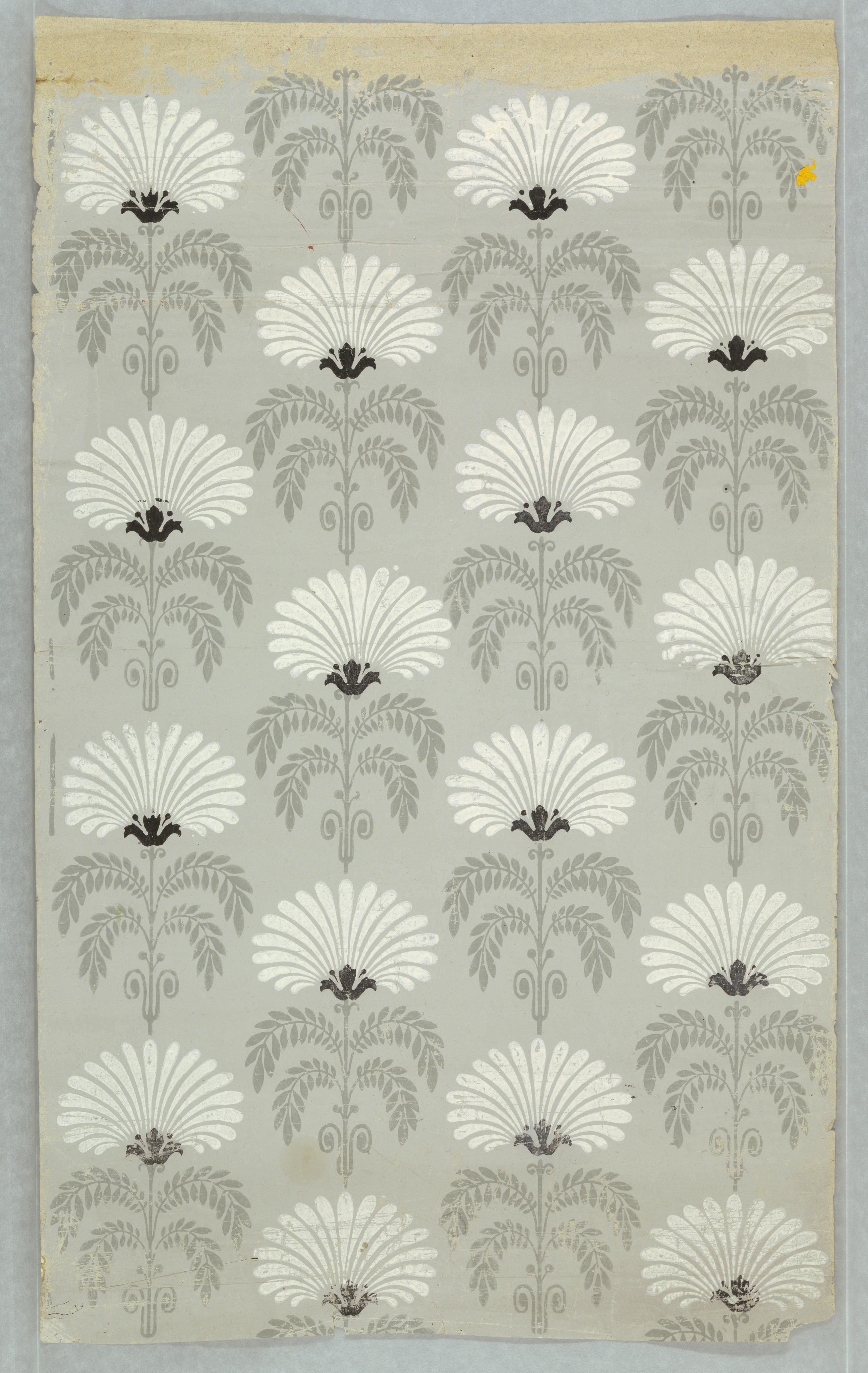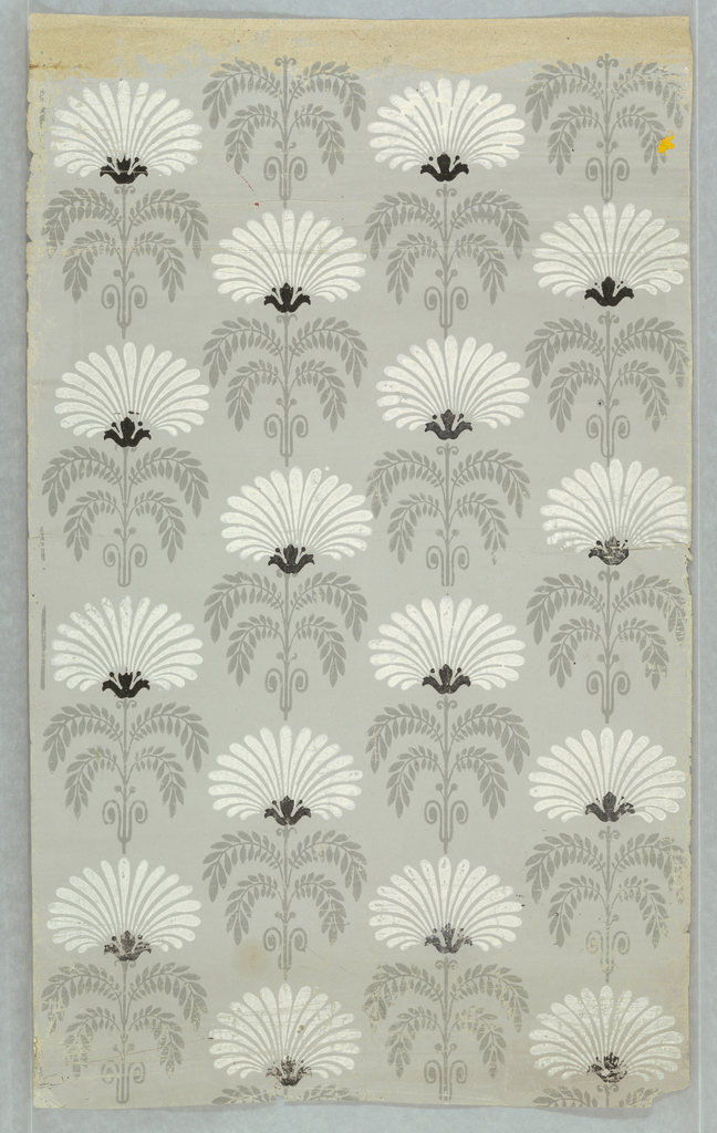 This is a Sidewall. It is dated 1810–30 and we acquired it in 1972. Its medium is block printed on handmade paper. It is a part of the Wallcoverings department.