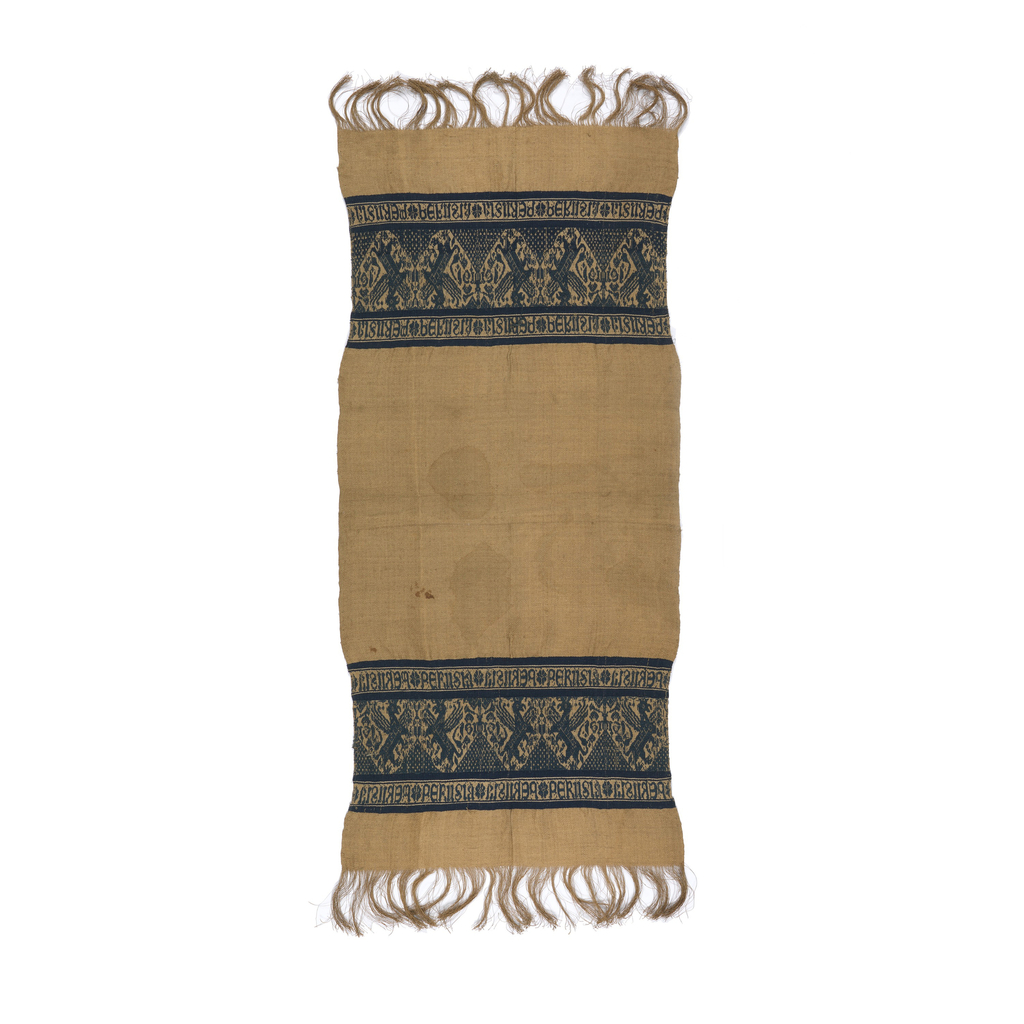 This is a Towel. It is dated 19th century and we acquired it in 1972. Its medium is bast fiber, cotton and its technique is plain weave with supplementary weft. It is a part of the Textiles department.