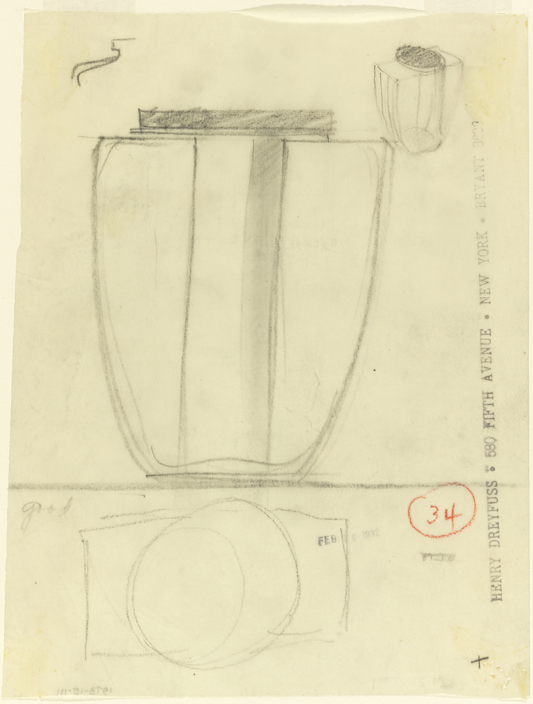 This is a Drawing. It was designed by Henry Dreyfuss Associates. It is dated 1932 and we acquired it in 1973. Its medium is graphite on tracing paper. It is a part of the Drawings, Prints, and Graphic Design department.