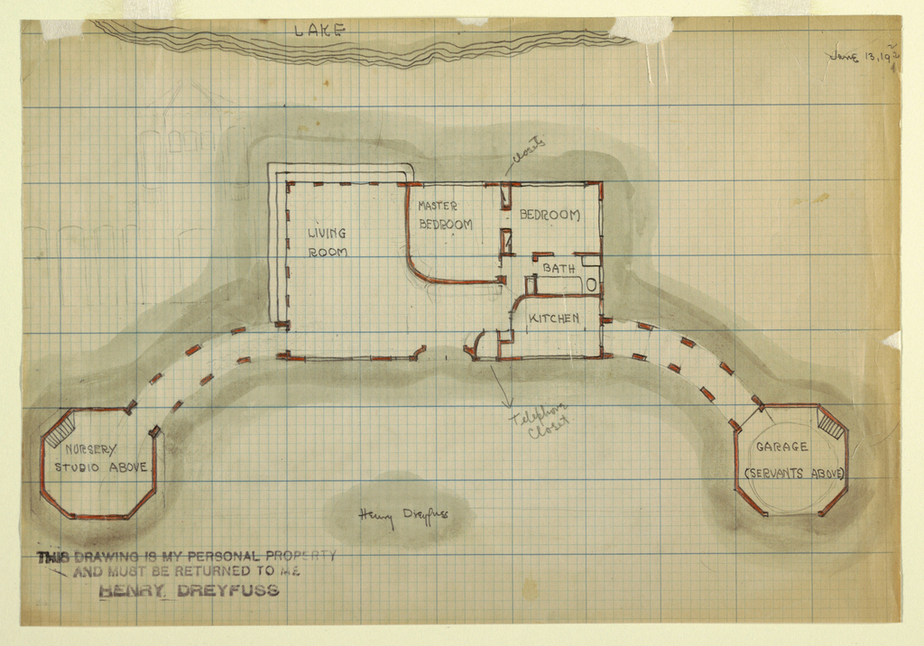 Stamped in black ink, lower left: THIS DRAWING IS MY PERSONAL PROPERTY / AND MUST BE RETURNED TO ME / HENRY DREYFUSS