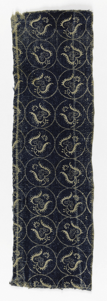 This is a Textile. It is dated 18th century and we acquired it in 1973. Its medium is bast fiber and its technique is blue resist on 2/2 twill. It is a part of the Textiles department.
