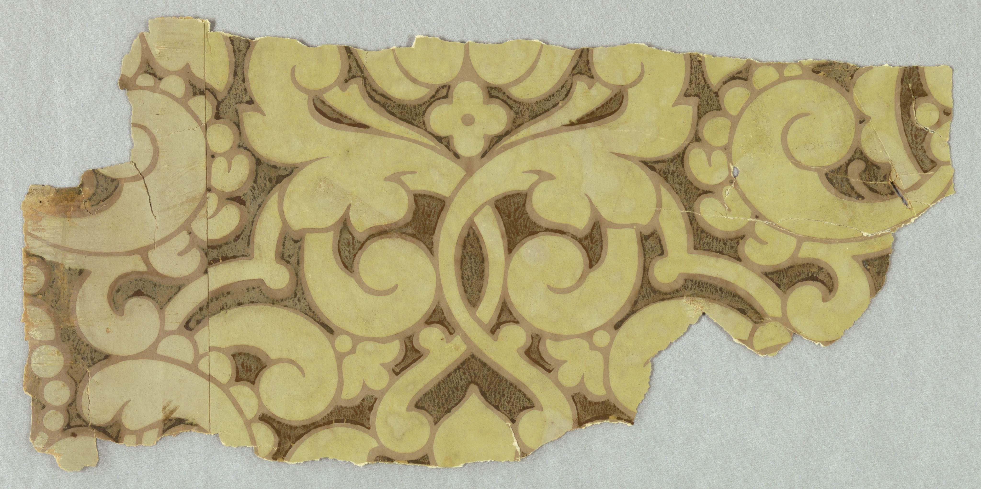 This is a Sidewall. It is dated 1860–1915 and we acquired it in 1973. Its medium is machine-printed and flocked. It is a part of the Wallcoverings department.