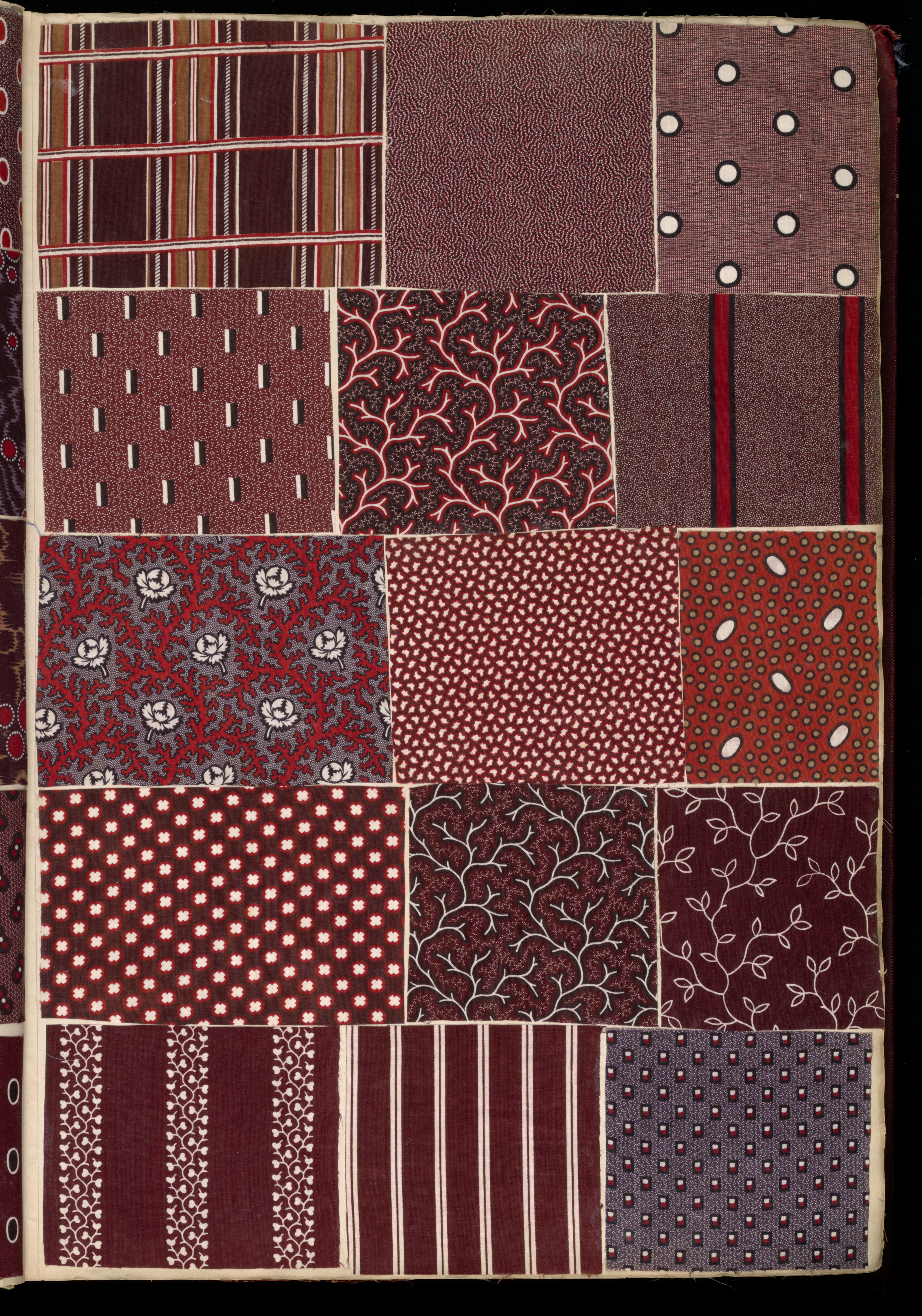 This is a Scrapbook of textile swatches. It is dated 1850 and we acquired it in 1973. Its medium is paper, printed cotton textile samples. It is a part of the Textiles department.
