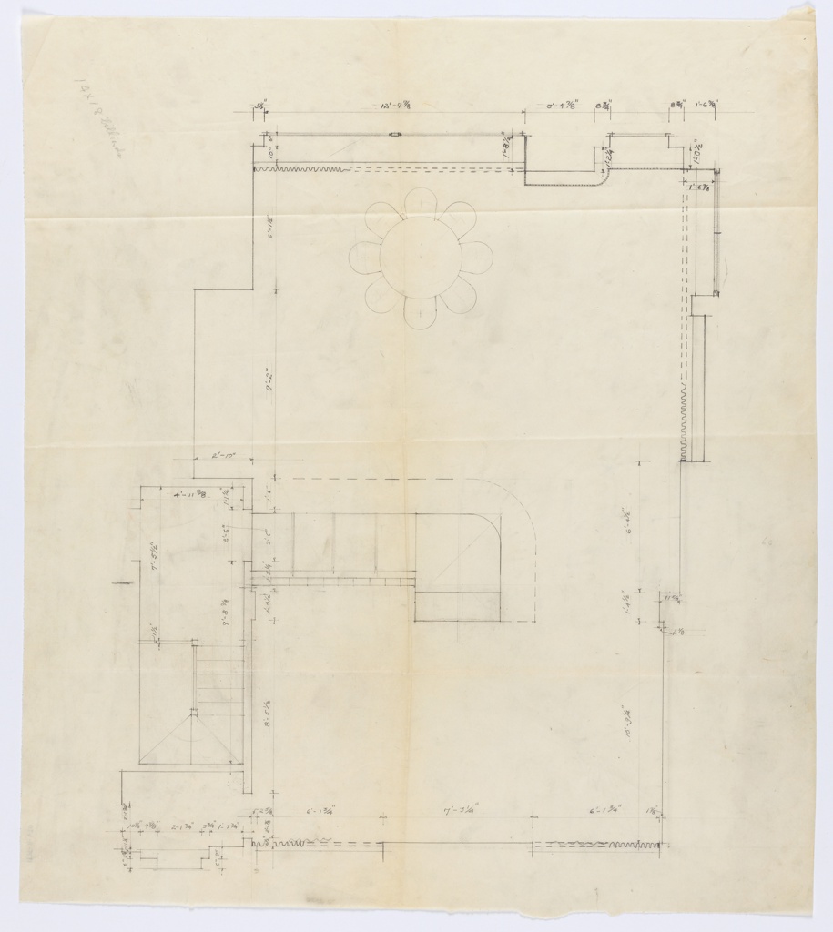 This is a Drawing. It was from the office of Donald Deskey and Donald Deskey Associates and made for (as the client) Abby Aldrich Rockefeller Milton and David Milton. It is dated 1936–37 and we acquired it in 1975. Its medium is graphite on tracing paper. It is a part of the Drawings, Prints, and Graphic Design department.