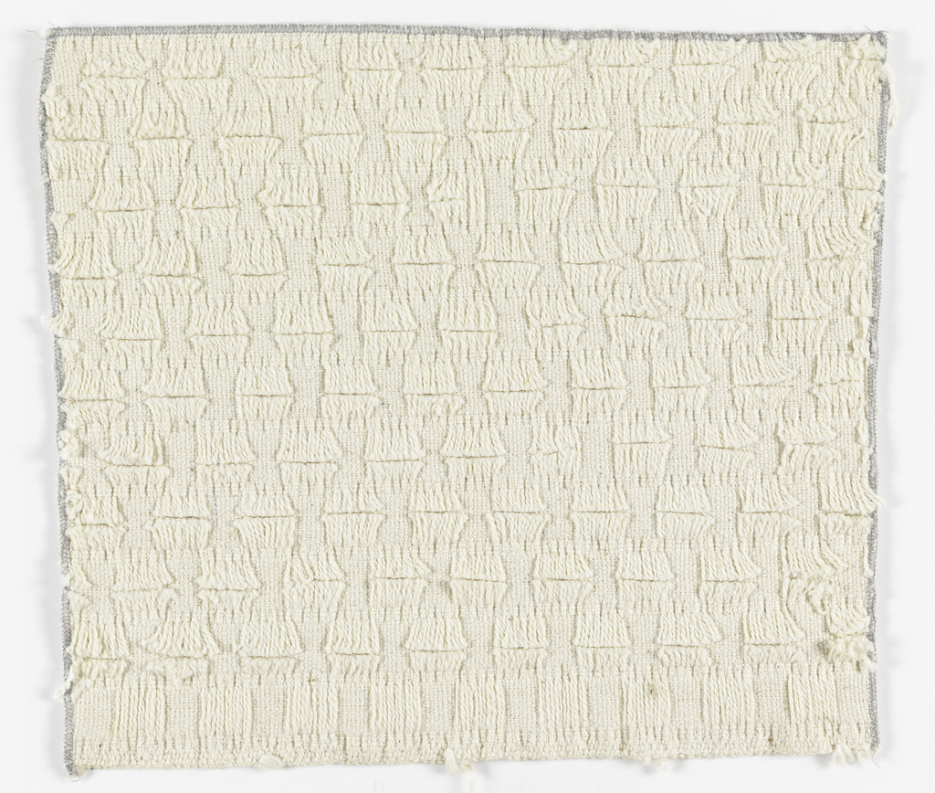 This is a Sample. It was designed by Isabel Scott and manufactured by Isabel Scott Fabrics. It is dated 1970–75 and we acquired it in 1975. Its medium is cotton and its technique is plain weave with supplementary weft patterning, some cut. It is a part of the Textiles department.