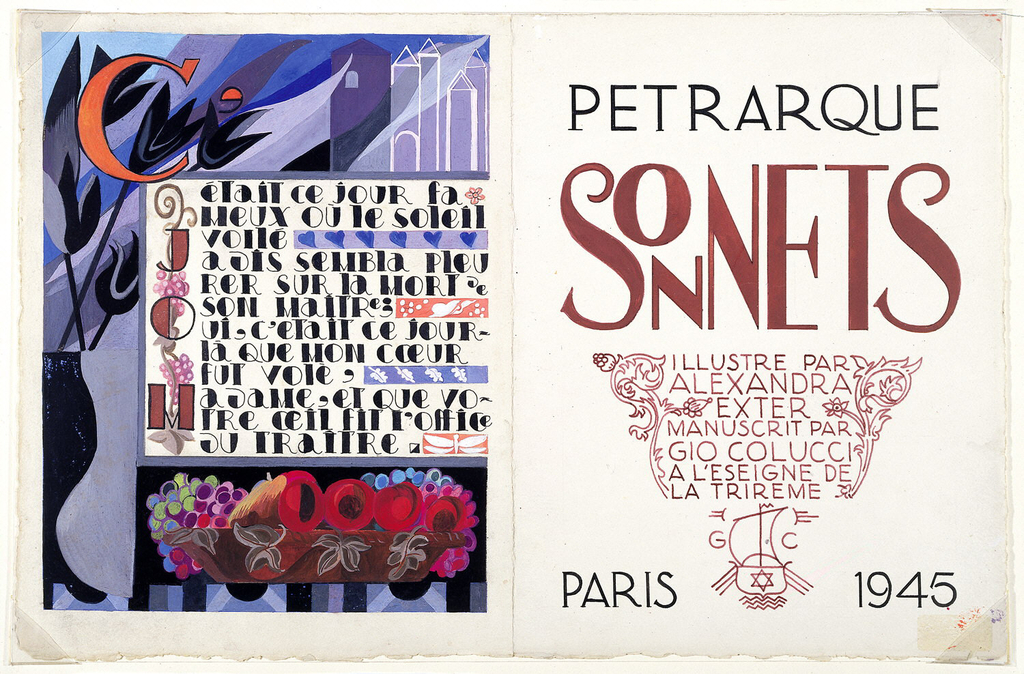 Drawing, Recto: Laura Petrarch Noves, for Petrarch's "Sonnets"; France; pochoir, brush and gouache, pen and ink on paper; 33 x 50.5 cm (13 in. x 19 7/8 in.); Gift of Simon Lissim; 1975-38-2-2