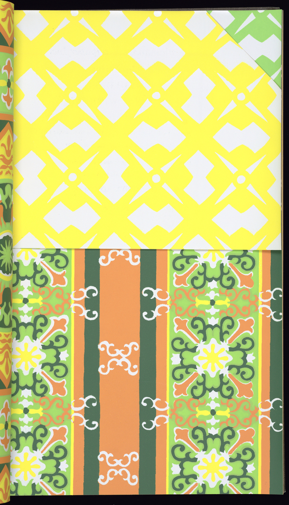 This is a Sample book. It was manufactured by Scalamandré. It is dated ca. 1975 and we acquired it in 1975. Its medium is screen printed. It is a part of the Wallcoverings department.