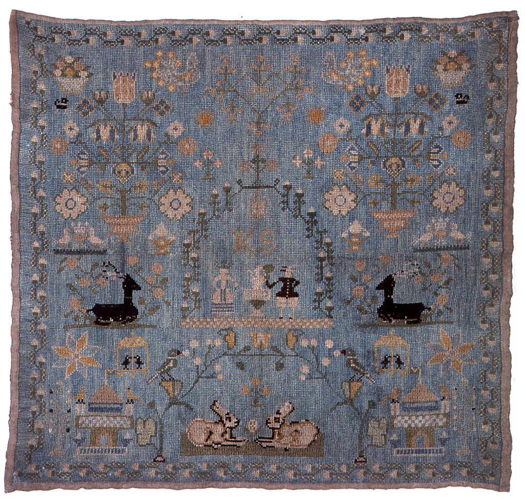 Sampler (Netherlands); silk embroidery on linen foundation; H x W: 34.3 x 36.2 cm (13 1/2 x 14 1/4 in.); Gift of Anonymous Donor from the Fraser/Martin Collection; 1975-81-4