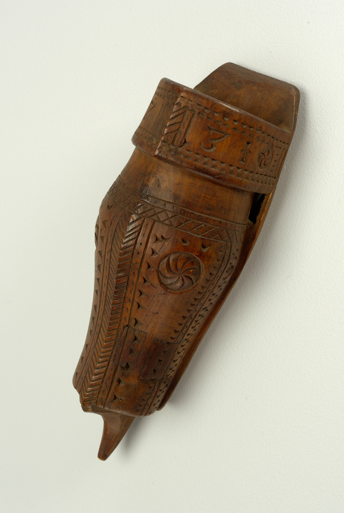 This is a sheath. We acquired it in 1976. Its medium is wood, carved. It is a part of the Product Design and Decorative Arts department.