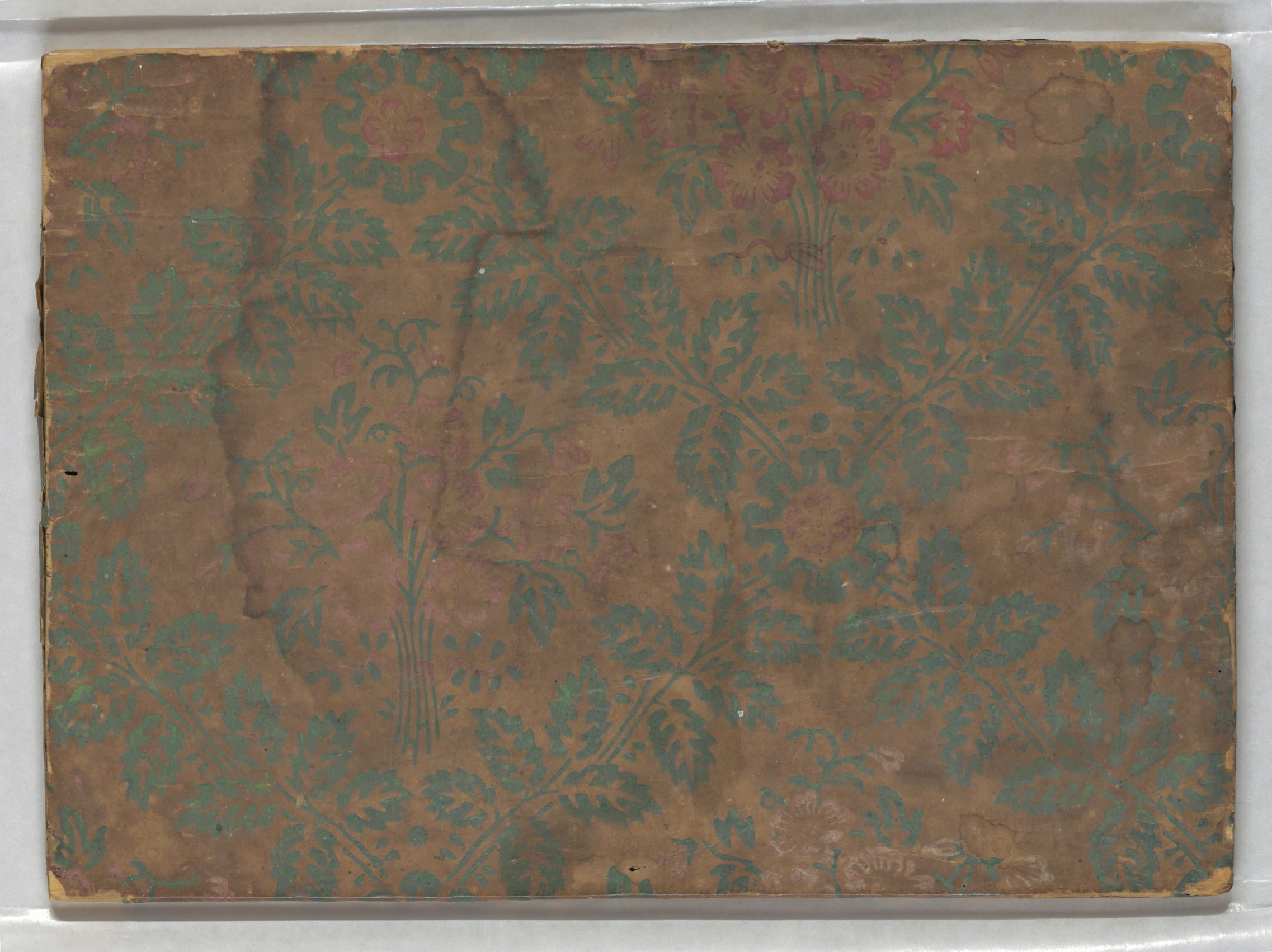 This is a Sidewall on board. It is dated 1830–40 and we acquired it in 1976. Its medium is block-printed on paper, mounted on pine board. It is a part of the Wallcoverings department.