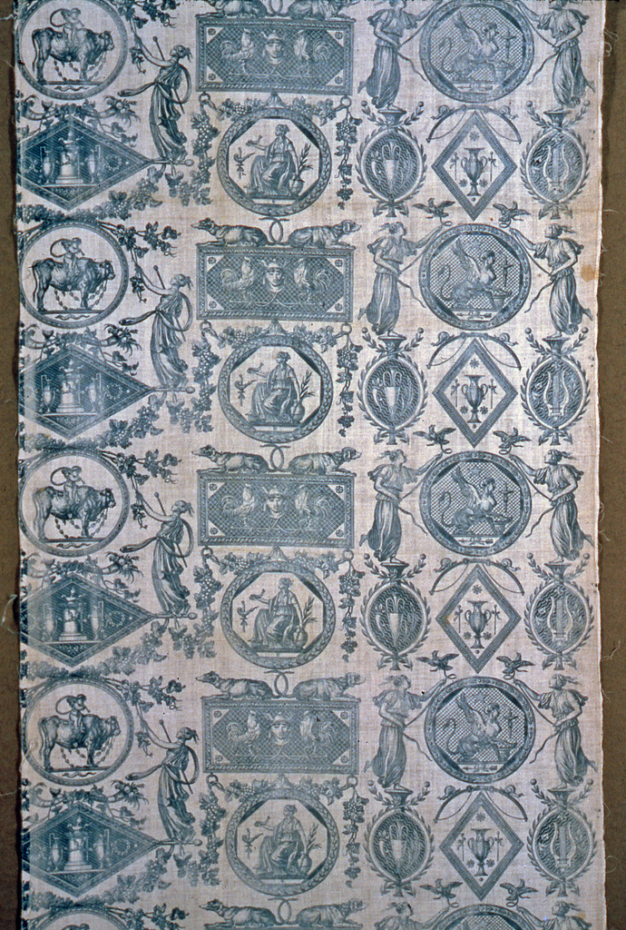 This is a Textile. It was designed by Jean-Baptiste Marie Huet and manufactured by Oberkampf & Cie.. It is dated 1805 and we acquired it in 1976. Its medium is cotton and its technique is printed by engraved roller on plain weave. It is a part of the Textiles department.