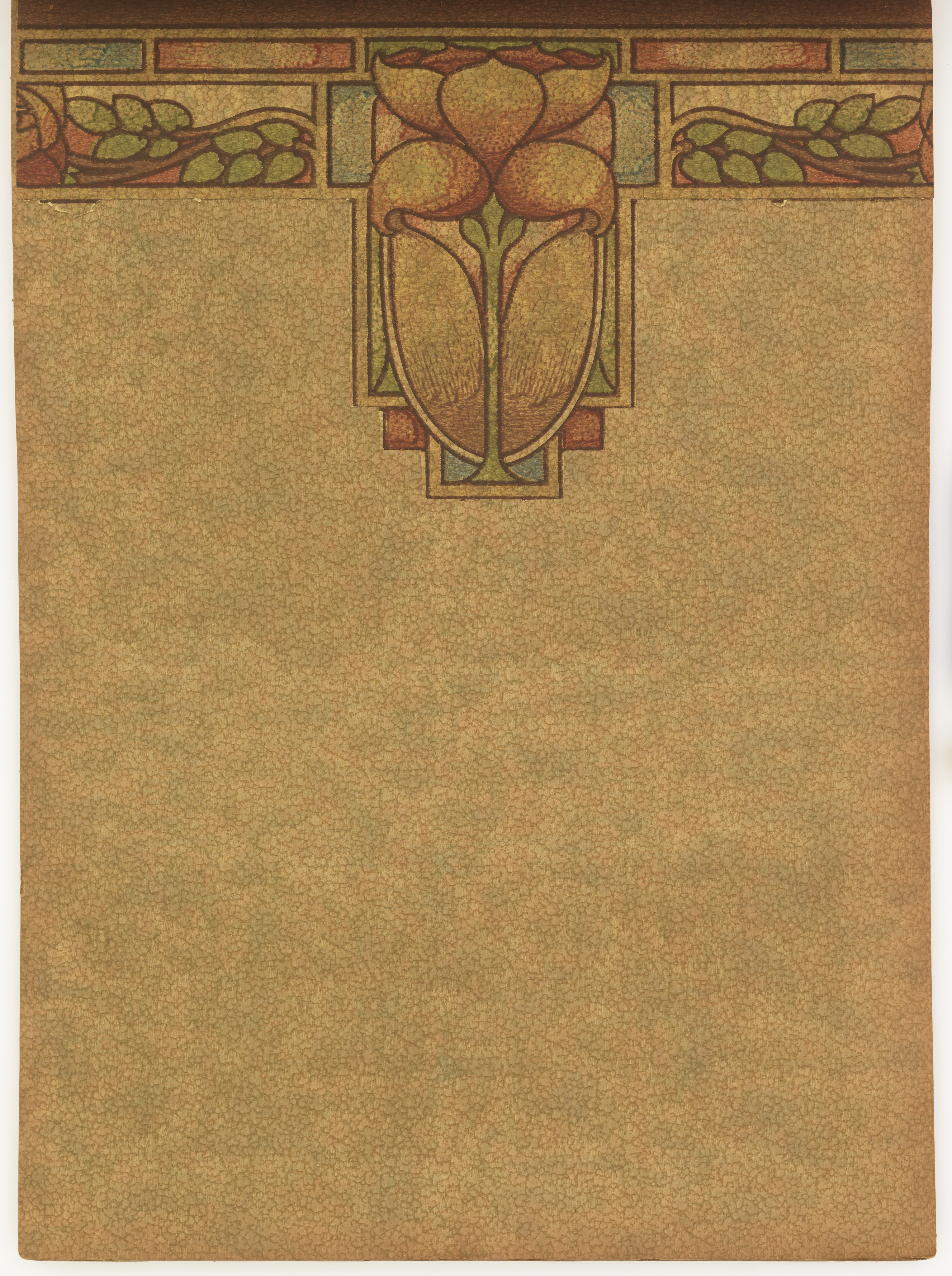 This is a Sample book. It was distributed by S.A. Maxwell & Co.. It is dated 1915 and we acquired it in 1976. Its medium is machine-printed, airbrushed, embossed, oatmeal paper. It is a part of the Wallcoverings department.