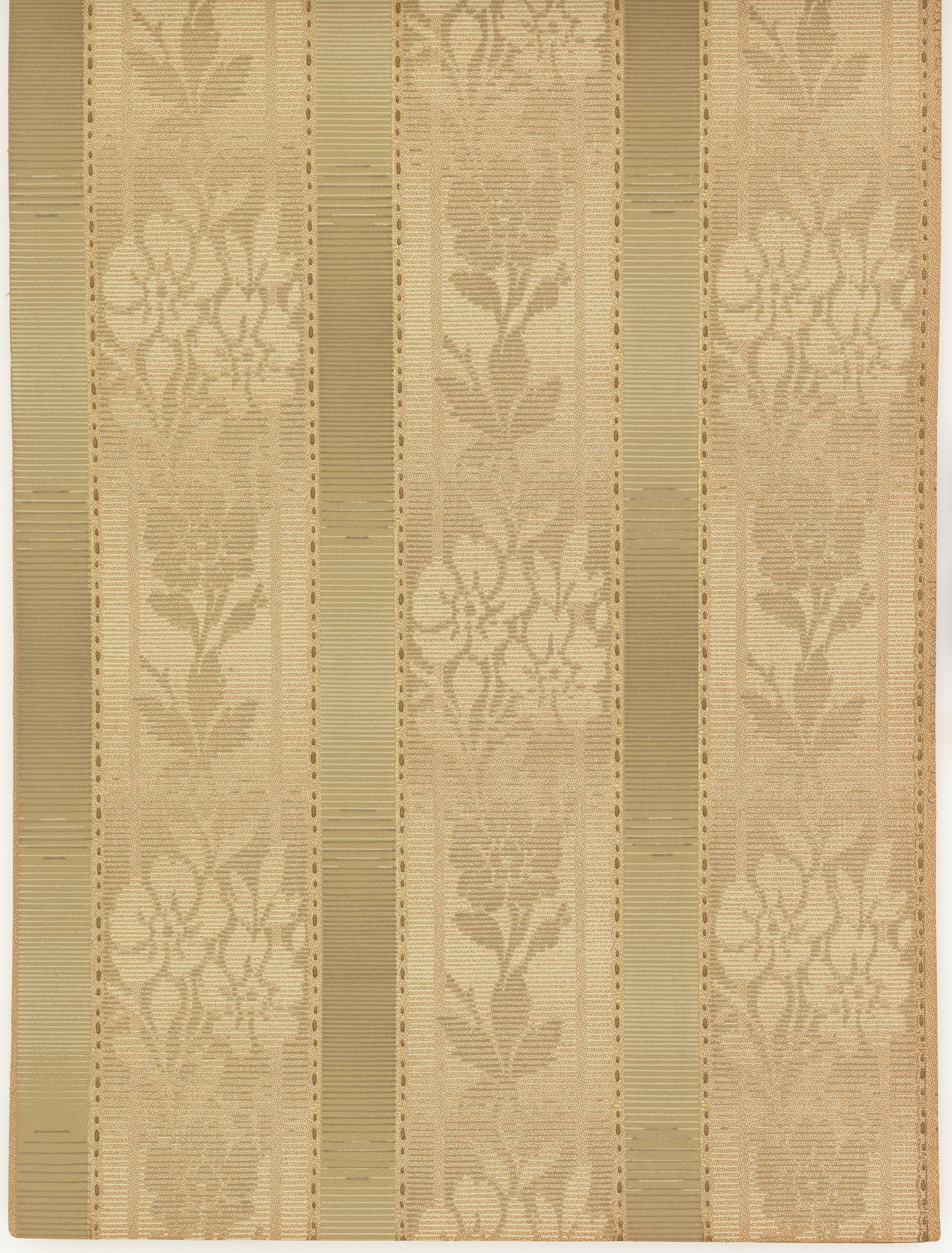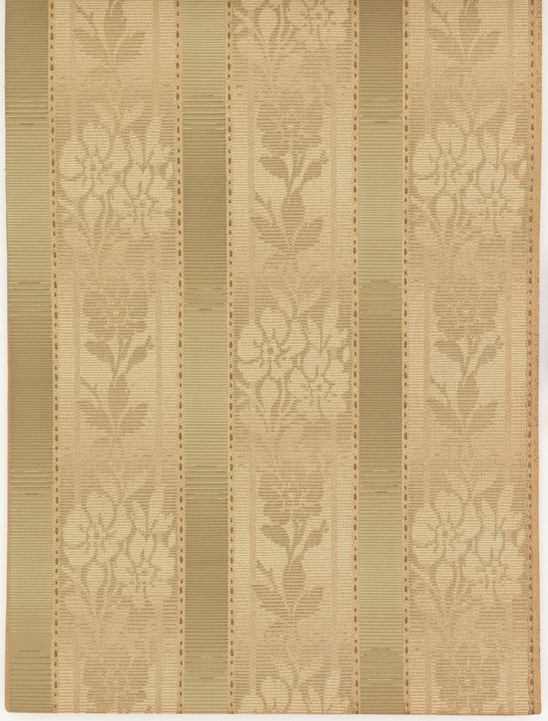 This is a Sample book. It was distributed by S.A. Maxwell & Co.. It is dated 1915 and we acquired it in 1976. Its medium is machine-printed, airbrushed, embossed, oatmeal paper. It is a part of the Wallcoverings department.