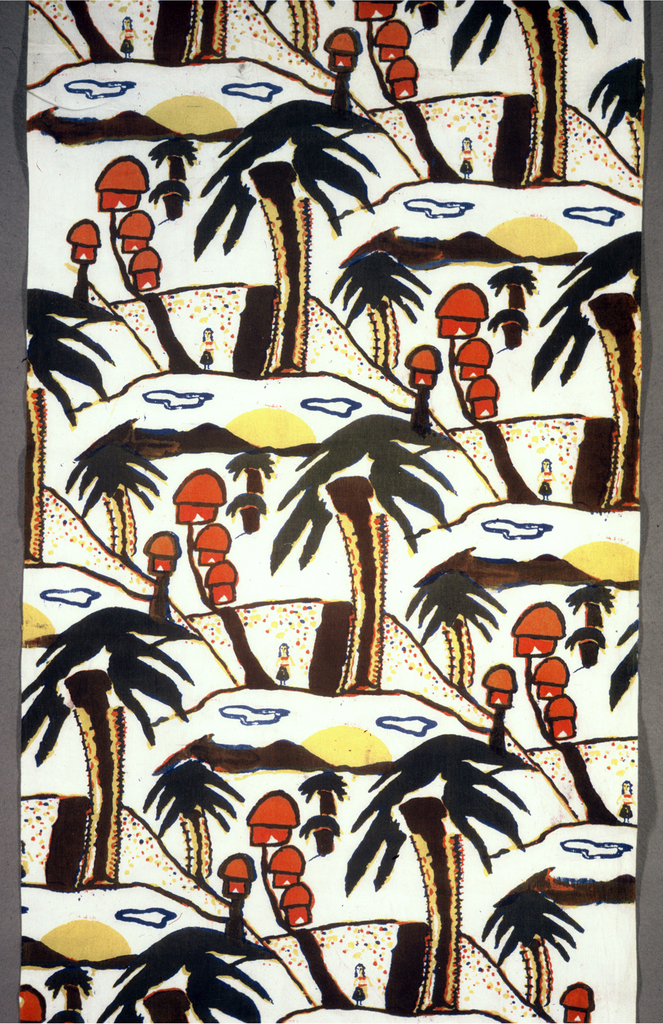 This is a Textile. It was made by Unknown. It is dated 1930s and we acquired it in 1976. Its medium is cotton and its technique is hand screen printed on plain weave. It is a part of the Textiles department.