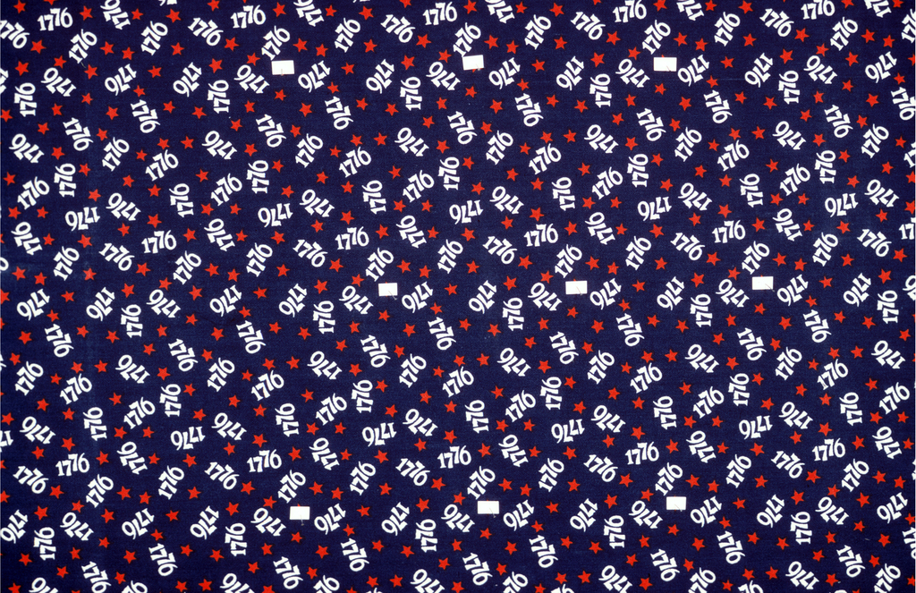 This is a Textile. It was manufactured by Russell Corporation. It is dated 1976 and we acquired it in 1977. Its medium is 65% polyester, 35% combed cotton and its technique is silkscreen printed on plain weave. It is a part of the Textiles department.