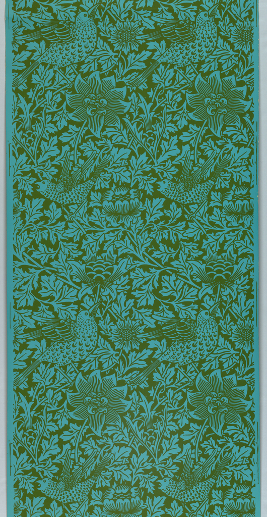 This is a Sidewall. It was designed by Morris & Co.. It is dated 1972 and we acquired it in 1977. Its medium is block printed on paper. It is a part of the Wallcoverings department.