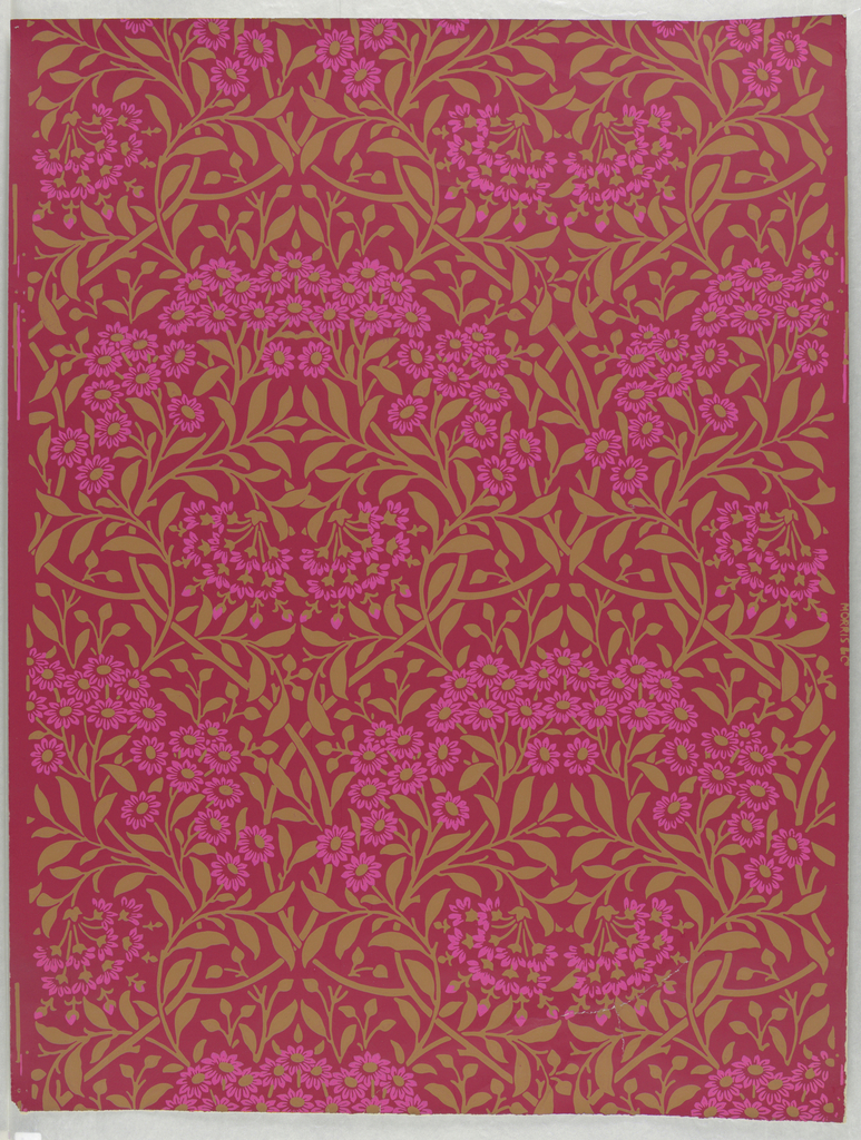 Sidewall, Michaelmas Daisy; England; block-printed on paper; 73.5 x 55.5 cm (28 15/16 x 21 7/8 in.); Gift of Clifford Murvine, Reed Wallpaper Company; 1977-28-11-a/h