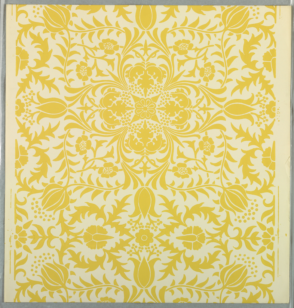 This is a Ceiling paper. It was designed by Morris & Co.. It is dated 1972 and we acquired it in 1977. Its medium is block-printed on paper. It is a part of the Wallcoverings department.