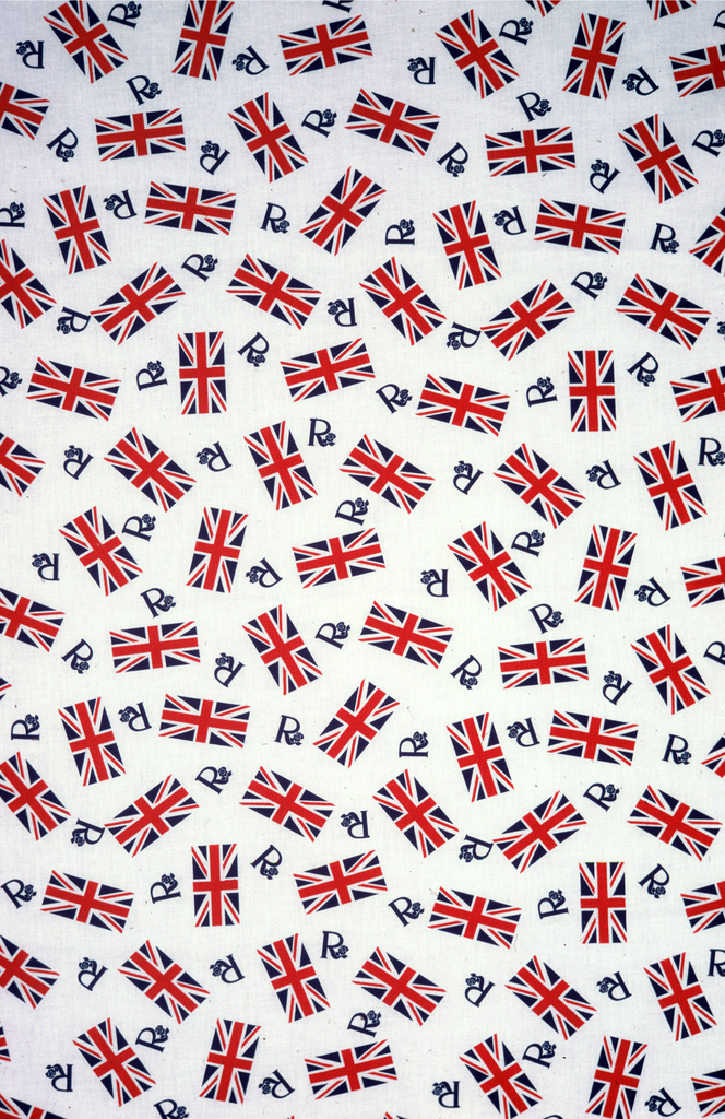This is a Commemorative textile. It is dated 1977 and we acquired it in 1977. Its technique is screen printed on plain weave. It is a part of the Textiles department.