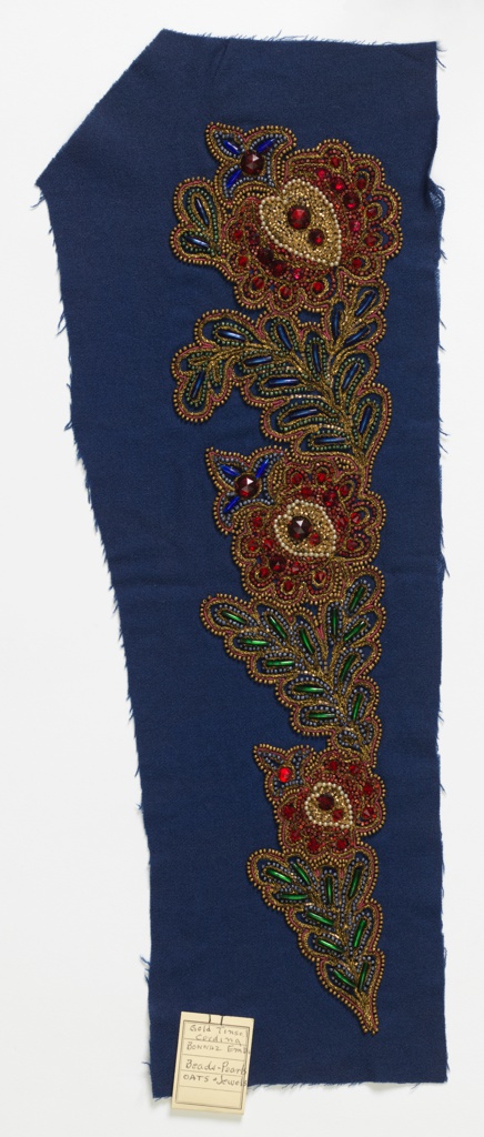 This is a Embroidery sample. It is dated 1930–39 and we acquired it in 1977. It is a part of the Textiles department.
